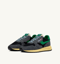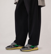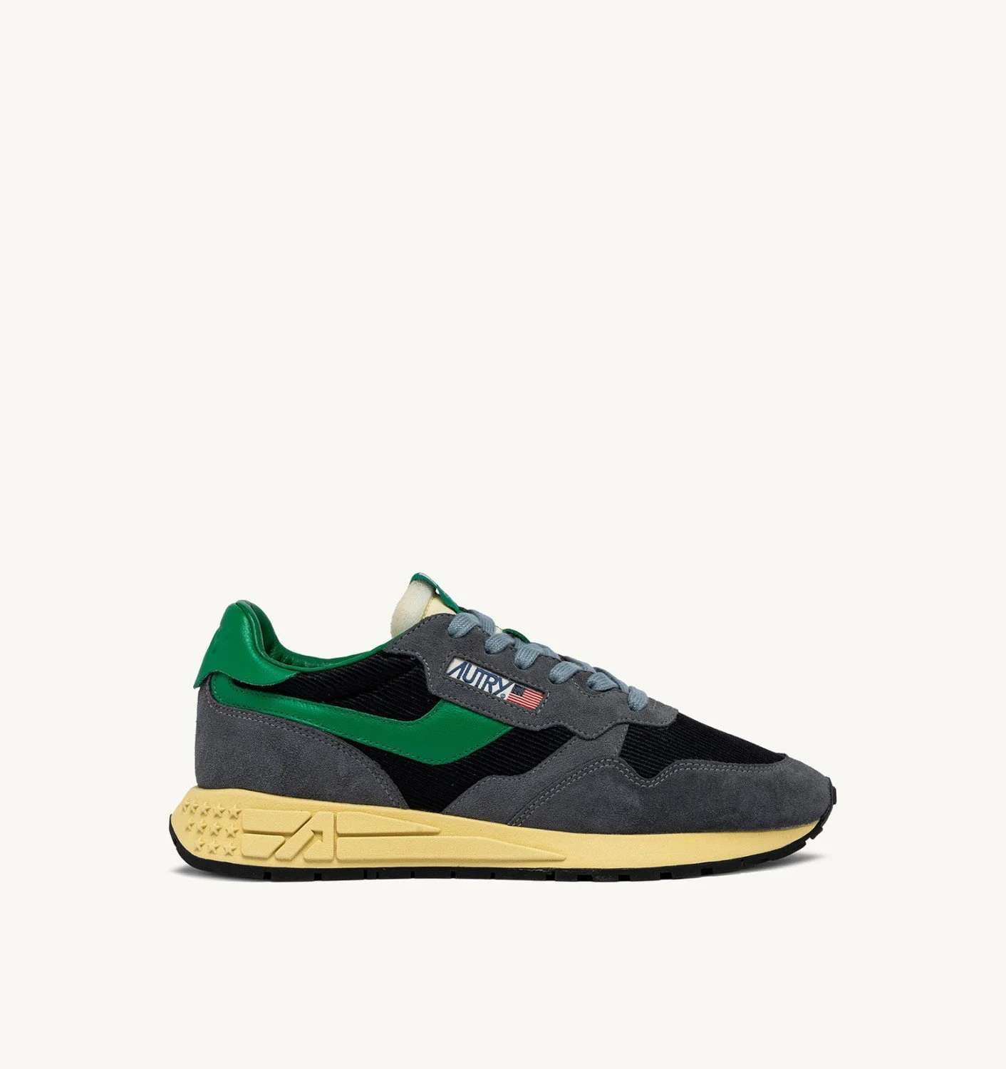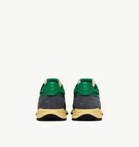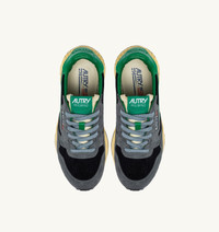 Innovative, light and extremely flexible, Reelwind Autry sneakers draw inspiration from the running world. This men's design is made from a mix of suede and ribbed mesh in gray, with green leather side panels. Designed for an active lifestyle, it features a sleek silhouette and performance construction for maximum freedom of movement. The rubber sole with an embossed tread is personalized with a star pattern and an A-arrow that offers a graphic and modern reinterpretation of the logo. SPECIFICATIONS: - Upper in leather mesh and suede. - Flat cotton laces. - Flat cotton laces. - Padded collar. - Nylon, leather and cotton terry lining. - 2cm-high raised sockliner in leather. - Running sole. - Height of sole: 2.5-3.5 cm. - Personalize shoe bag in fabric. COMPOSITIONS: Upper: 20% leather, 25% suede, 15% mesh, 40% nylon Lining: 40% leather, 50% cotton terry, 10% nylon Sole: 60% Phylon, 40% rubber