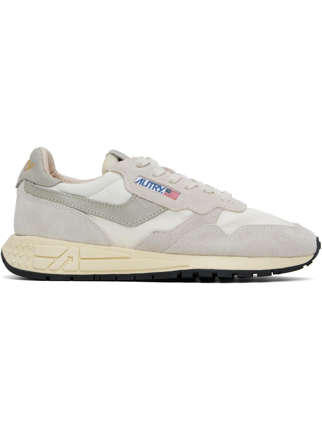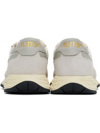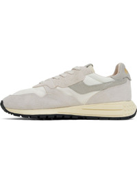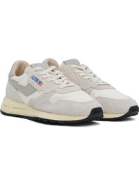 Low-top suede, crackled leather, and canvas sneakers in gray and white. - Logo-embossed rubber trim at toe - Lace-up closure - Logo patch at padded tongue - Padded collar - Logo applique at sides - Inset logo patch at outer side - Logo stamp at heel tab - Pigskin suede and terrycloth lining - Logo-embossed rubber midsole - Treaded rubber sole Supplier color: White/Nat