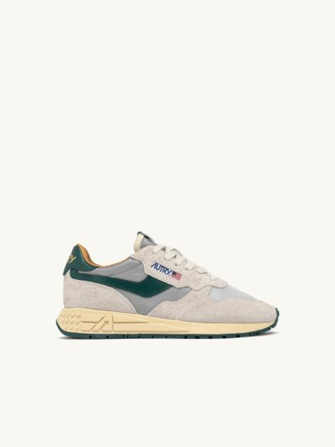 Innovative, light and extremely flexible, Reelwind Autry sneakers draw inspiration from the running world. The men’s style is crafted from a mix of suede and dark beige ripstop nylon, with side panels in leather. Note the monochromatic upper with tone-on-tone details and sole, with the side logo standing out to add that touch of authenticity. Designed for a dynamic lifestyle, it features a slender silhouette and performance construction that ensures maximum freedom of movement. The rubber sole with an embossed tread is personalized with the A-arrow that offers a graphic and modern reinterpretation of the logo. SPECIFICATIONS: - Upper in nylon, suede, and leather. - Flat laces in cotton. - Embroidery label detailing seamed at the tongue. - Padded collar. - Leather and cotton terry lining. - 2 cm-high raised sockliner in leather. - Color matching rubber sole. - Height of sole: 2.5-3.5 cm. - Personalized shoe bag in fabric. COMPOSITIONS: Upper: 20% leather, 25% suede, 55% nylon Lining: 40% leather, 50% cotton terry, 10% nylon Sole: 60% Phylon, 40% rubber