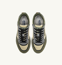 The new Autry Wildpace style stands out for its outdoor-inspired design, featuring technical details that enhance performance. Crafted from beige ripstop nylon and green leather, this sneakers is enhanced with TPU-coated details, a side insert with the Autry logo in silicone, and a suede heel tab with an embossed logo. The sole is characterized by the lightweight Phylon and a contrast color tread that provides high-performance grip. The comfortable removable sockliner is made in collaboration with "Ortholite". SPECIFICATIONS: - Upper in leather and ripstop nylon. - Micro-perforated toe. - Flat cotton laces and two-tone hiking-inspired laces. - Logo print on the tongue. - Padded collar. - Nylon and cotton terry lining. - 1 cm-high raised Ortholite sockliner. - Sole in rubber and Phylon. - Height of sole: 3.5-4.5 cm. - Personalized shoe bag in fabric. COMPOSITIONS: Upper: 45% cordura nylon, 30% leather, 5% nubuck leather, 20% welded TPU Lining: 30% mesh, 10% leather, 50% cotton terry, 10% nylon Sole: 100% rubber and phylon