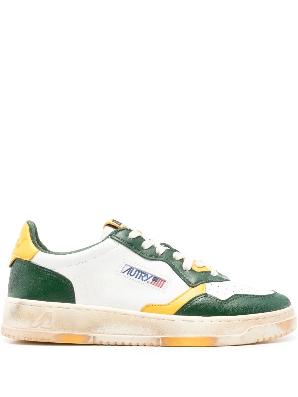 Super Vintage panelled sneakers Highlights - White/multicolour - Calf leather - Distressed effect - Colour-block panelled design - Perforated toebox - Logo patch at the tongue - Embroidered logo to the side - Contrasting branded heel counter - Round toe - Front lace-up fastening - Pull-tab at the heel - Branded leather insole - Flat rubber sole Imported Composition Lining: Calf Leather 100%, Fabric 100% Outer: Calf Leather 100% Sole: Rubber 100% SIZE & FIT Measurement Sole height 0.98 in(2.5 cm) HEEL 1.37 in(3.5 cm)