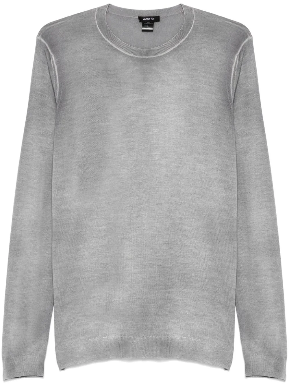 faded sweater Highlights - Taupe grey - Ribbed cuffs and hem - Crew neck - Long sleeves Made in Italy Composition Cashmere 70%, Silk 30% SIZE & FIT Model measurements Height 6 ft 2 in(1.87 m) Bust/Chest 37.79 in(96 cm) Hips 37.79 in(96 cm) Waist 30.31 in(77 cm) FittingInformation Designed for a relaxed fit, this piece allows for comfort and movement when worn Made with a lightweight knit, this piece offers some stretch