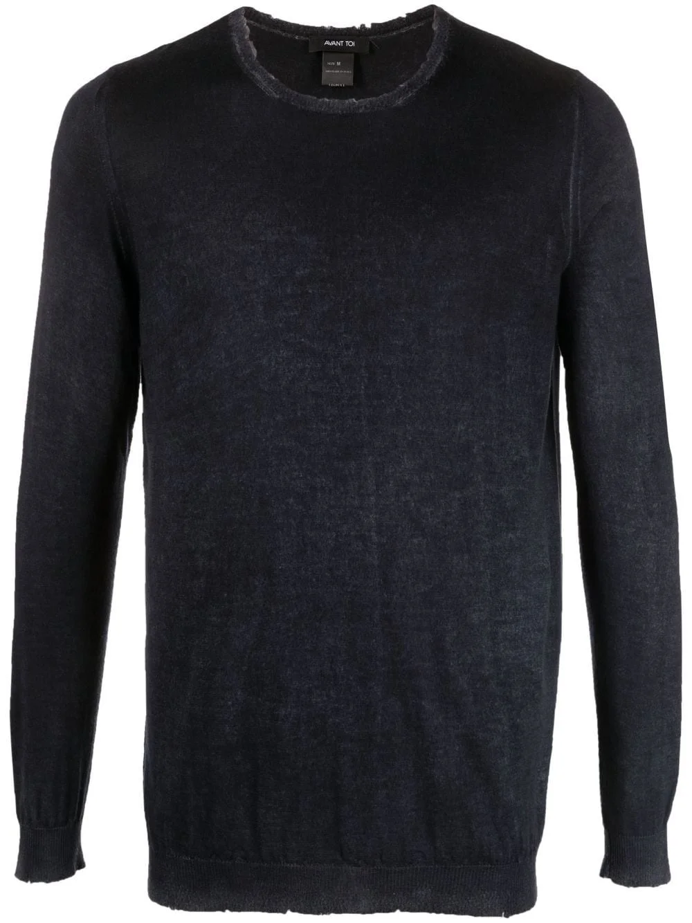 round neck jumper navy blue silk-cashmere blend fine knit round neck long sleeves straight hem Made in Italy Composition Cashmere 70%, Silk 30% SIZE & FIT Model measurements Height 6 ft 1 in(1.85 m) Bust/Chest 37.79 in(96 cm) Hips 37.4 in(95 cm) Waist 30.7 in(78 cm) FittingInformation This piece fits true to size. We recommend you get your regular size Cut for a relaxed fit Made with a mid-weight fabric Washing instructions Dry Clean Only