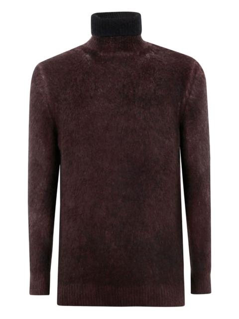 high-neck brushed sweater Highlights - Dark brown - High neck - Long sleeves - Brushed texture - Ribbed hem Made in Italy Composition Cotton 75%, Polyamide 20%, Elastane 5% Washing instructions Read Manufacturer Guidelines