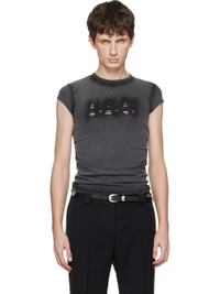 Cotton-blend jersey T-shirt. · Fading and dyed detailing throughout · Rib-knit crewneck · Raw-edge cutout logo at chest · Pleating at side seams · Cap sleeves Supplier color: Black 94% cotton, 6% elastane. Made in Italy 252094M213002