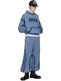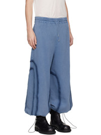 Cotton French terry lounge pants. · Fading and dyed detailing throughout · Drawstring at elasticized waistband · Two-pocket styling · Logo embroidered at front leg · Paneling at lower legs · Bungee drawstring at cuffs Supplier color: Washed blue 100% cotton. Made in Italy 252094M190000