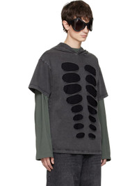 Hooded cotton jersey T-shirt. · Fading throughout · Short sleeves · Raw-edge cutouts at front with black underlay · Dropped shoulders Supplier color: Washed Grey 100% cotton. Made in Italy 252094M213004