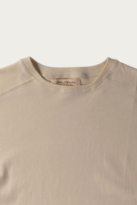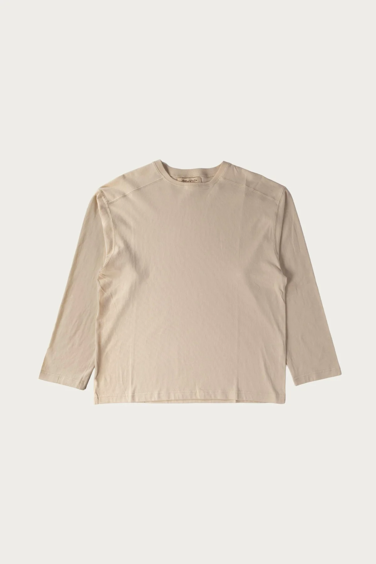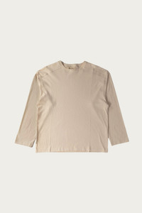 Made in a soft cotton jersey, this long-sleeve tee offers a quiet rhythm to your everyday wardrobe. The shape is relaxed and the neutral tone give it movement without being loud. Pair it under a jacket or wear solo for a clean, textured base. - 100% cotton jersey - Long sleeve with relaxed fit - Crewneck collar - Made in Japan - Natural Cotton Jersey