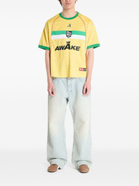 short-sleeve sport jersey top Highlights - Yellow - Geometric pattern - Raglan sleeves - Crew neck - Contrasting panels - Embroidered emblem Imported Composition Polyester 100% Washing instructions Hand Wash