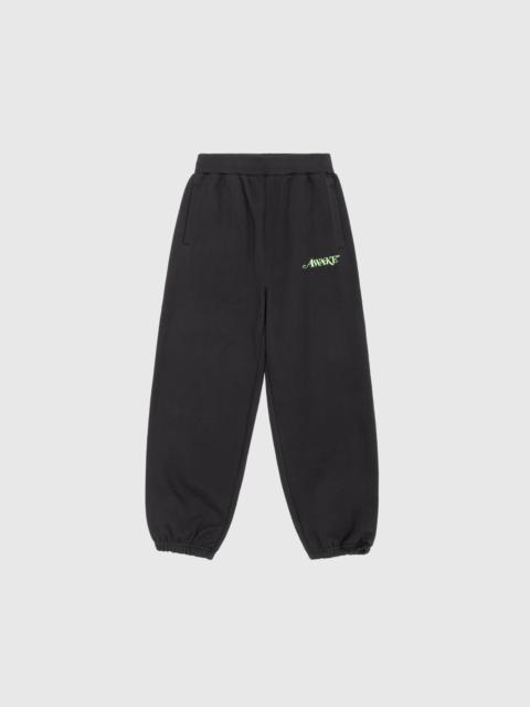 - AWK-SP25-PA007-BLK - Black - 100% Cotton - Elasticated waist with drawstrings - Two welted side pockets - Embroidered logo at the front - Back pocket with zipper closure - Woven label on the back - Elastic cuffs - Standard Fit