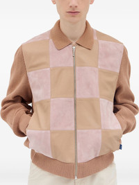 knitted-panel suede jacket Highlights - Brown - Suede leather panels - Knitted cotton sleeves - Zip front fastening - Checkerboard pattern - Welt pockets Imported Composition Trims: Leather 100% Acrylic 100% Washing instructions Specialist Cleaning