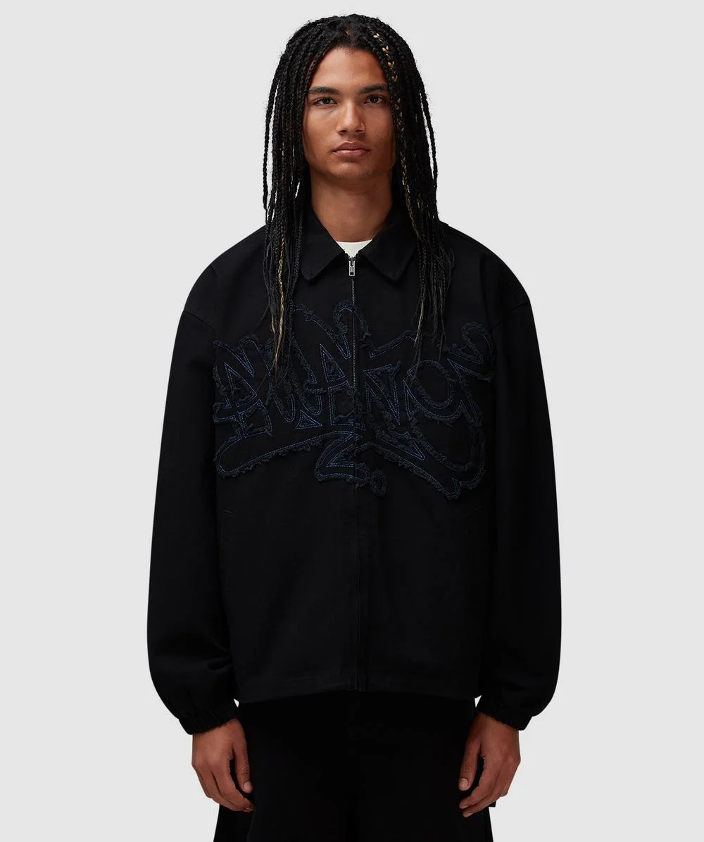 Awake NY's latest collection embodies the city's vibrant culture and unique sensibility. The Coaches jacket transforms a timeless silhouette with the brand's distinctive embroidered logo, offering a refined fit. • Regular fit • Point collar • Full zip fastening • Dual side pockets • Embroidered logo with frayed edges • Elasticated cuffs • 100% cotton • Item code: AWK-SP25-OT004 BLACK Product Information • 4111899