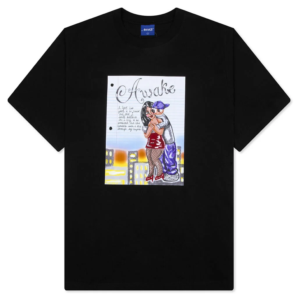 Elevate your daily rotation with the Hug Tee from Awake NY. Cut from soft cotton with a relaxed fit, this tee features a ribbed crew neckline. Simple and stylish, a screen-printed graphic sits at the front of the final touch. - 100% Cotton - Relaxed fit - Crew neckline - Ribbed collar - Screen-printed graphics - Style No: AWK-FW25-TS003-BLK