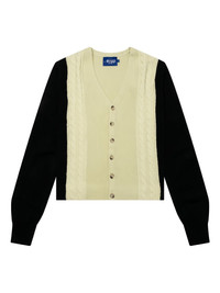 cable-knit panelled cardigan Highlights - Beige - Cable knit - Contrast panel - Button fastening - V-neck - Long sleeves Imported Composition Wool 100% Washing instructions Read Manufacturer Guidelines