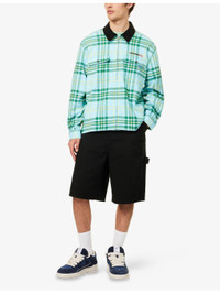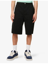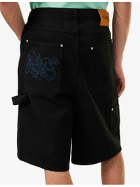 PRODUCT DETAILS - Awake NY denim shorts - 100% cotton - Exposed button and concealed zip-fly fastening at front - Relaxed fit, high-rise, wide leg, belt loops, five pockets, brand patch and embroidery at back - Machine wash at 30°C - Size medium: rise 15in / 39cm, inside leg 10in / 26cm, leg opening 26in / 66cm - Model is 6ft 2in/1.88m and wears a size medium - Lightweight, slight stretch Ref: R04460720