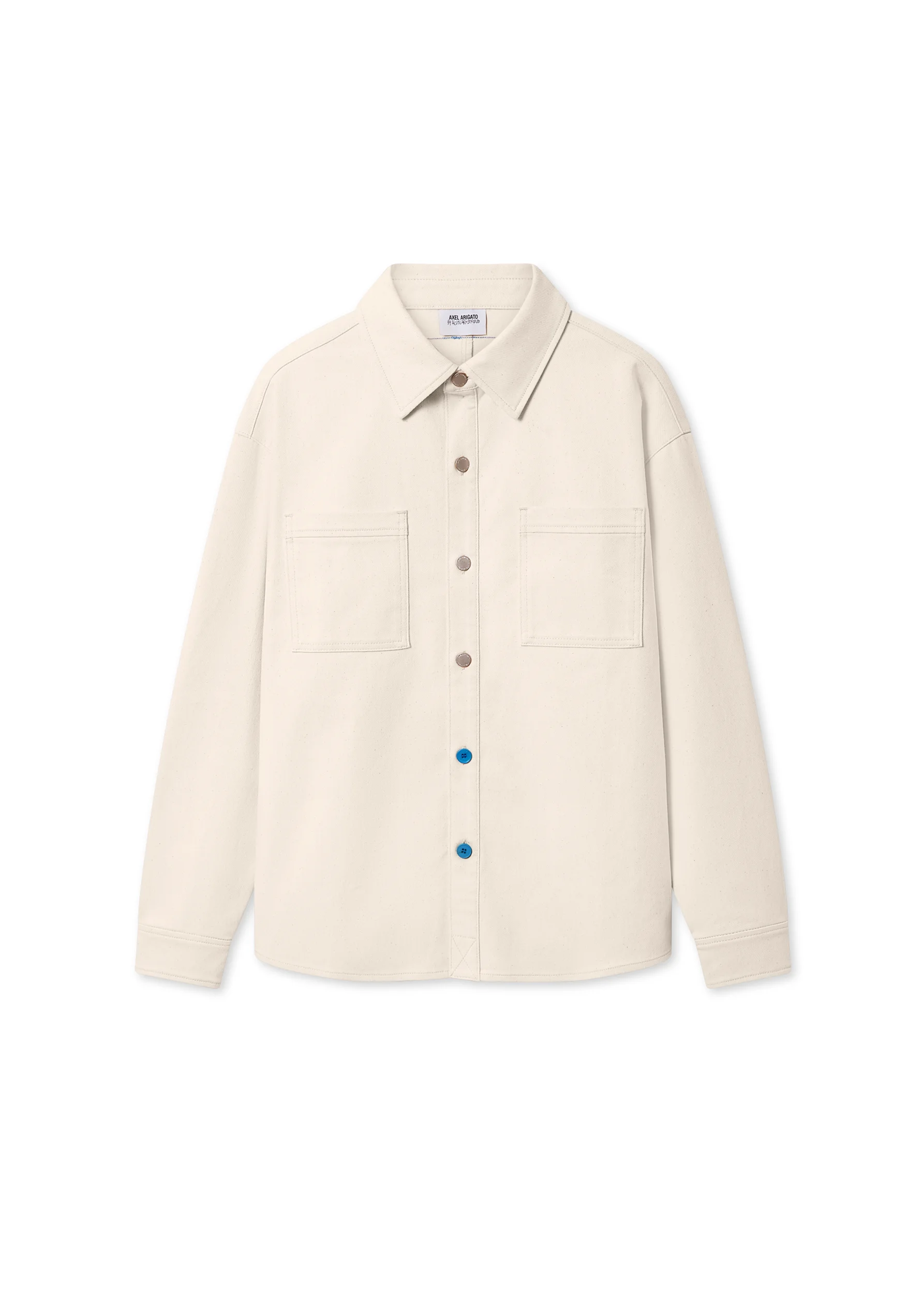 The Axel Arigato x Alvin Armstrong Overshirt is made from washed cotton twill for a relaxed, comfortable fit. It features a button closure, chest pockets, and a mix of custom blue buttons and branded shank buttons handpicked by Alvin, with contrast blue stitching at the back neck for a distinctive detail. Made in Turkey, this exclusive piece reflects careful craftsmanship and Alvin’s personal vision. Brooklyn-based artist Alvin Armstrong brings his bold, figurative work to this collaboration, personally contributing hand-drawn prints and handpicked details. Each piece translates his vibrant style into wearable, one-of-a-kind art. The model is 185 cm / 6'1 ft and wears a size M. Style Details - 98% Cotton 2% Elastane - Relaxed Fit - In collaboration with Alvin Armstrong - Washed cotton twill fabric - Button closure - Chest pockets - Branded shank buttons - Contrast blue stitching at the back neck - Custom blue buttons - Crafted in Turkey - Care instructions: 30 degrees gentle cycle, wash with similar colours