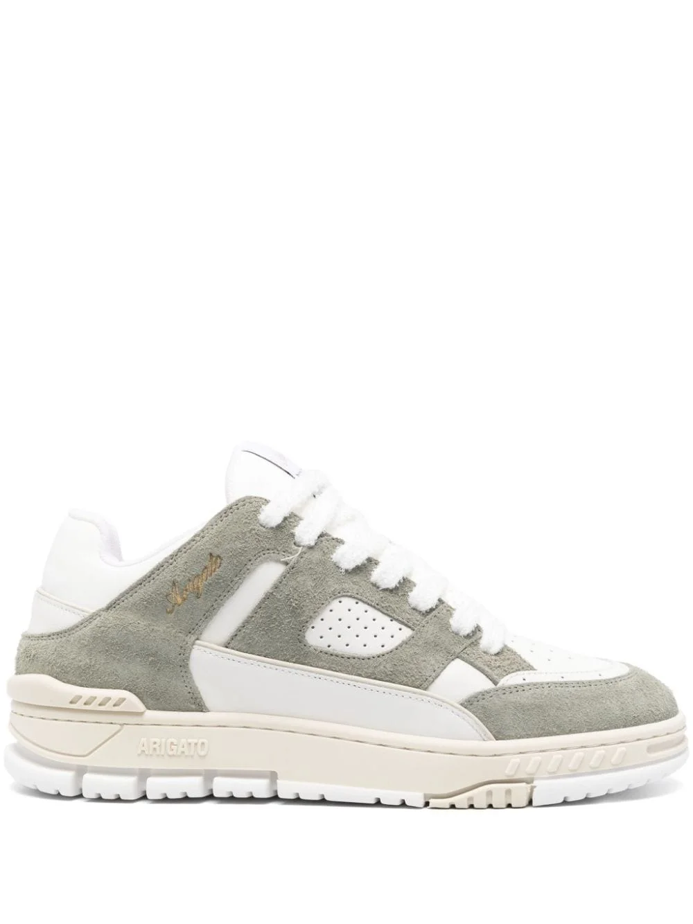 Area Lo sneakers white/light green calf leather suede panels front lace-up fastening padded ankle debossed logo to the side embossed logo to the side logo patch at the tongue perforated toebox round toe branded insole flat rubber sole Imported Composition Sole: Rubber 100% Lining: Fabric 100% Outer: Calf Leather 100%, Fabric 100% SIZE & FIT Measurement HEEL 1.57 in(4 cm) Sole height 1.18 in(3 cm)