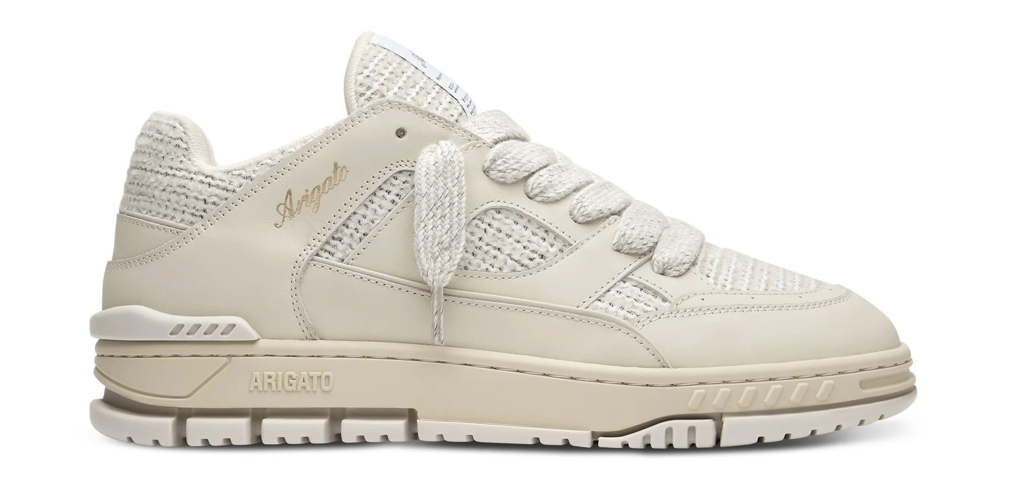 The Area Lo sneaker pays homage to ‘90s basketball styles. Handcrafted from premium leather and textile, it has paneled uppers finished with perforations and heel spoilers. Style Details - Upper: 40% Leather + 40% Polyester + 20% Cotton - Lining: 82% Recycled Polyester + 9% PU + 9% PA - Sole: 100% TR - European Sizing - Logo stamp in metallic gold - Branded woven tongue label - Flat cotton laces - Handmade in Portugal