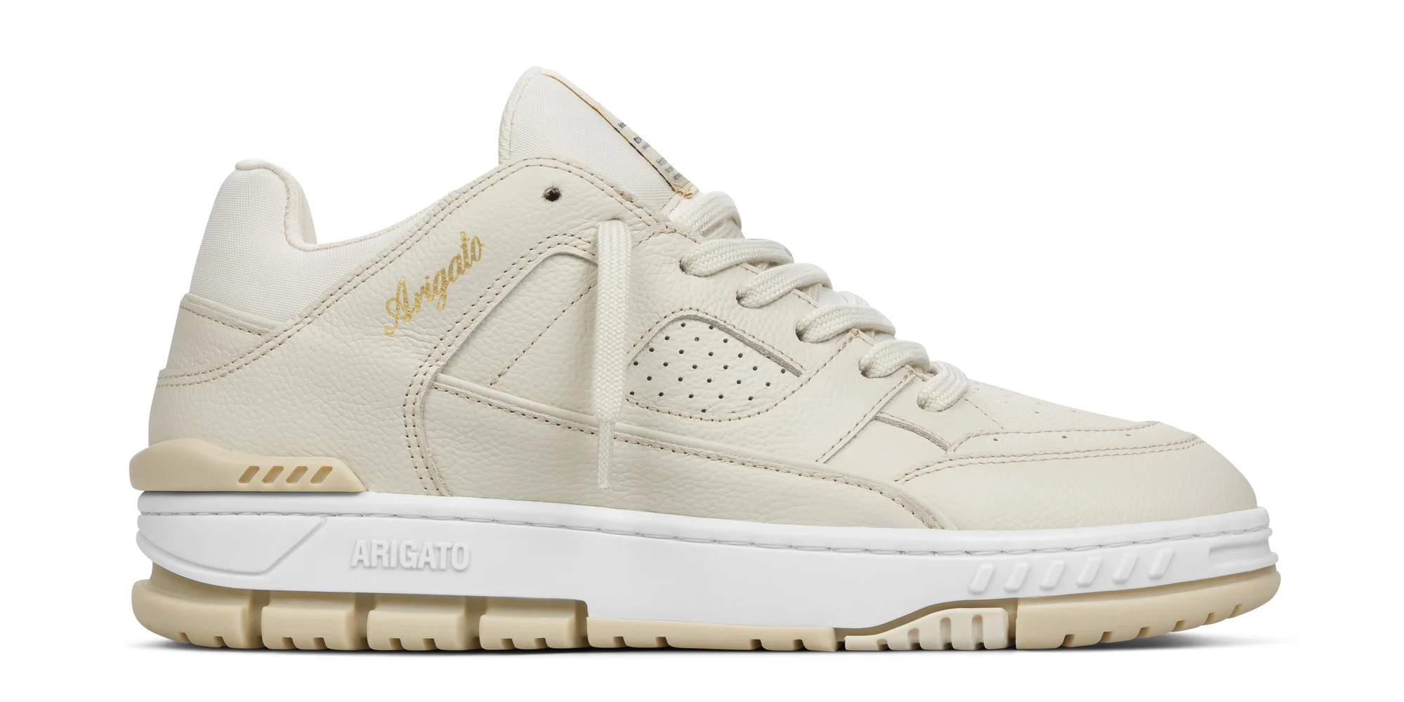 The Area Lo sneaker pays homage to ‘90s basketball styles. Handcrafted from premium leather, suede and SEAQUAL® YARN, it has paneled uppers finished with perforations and heel spoilers.