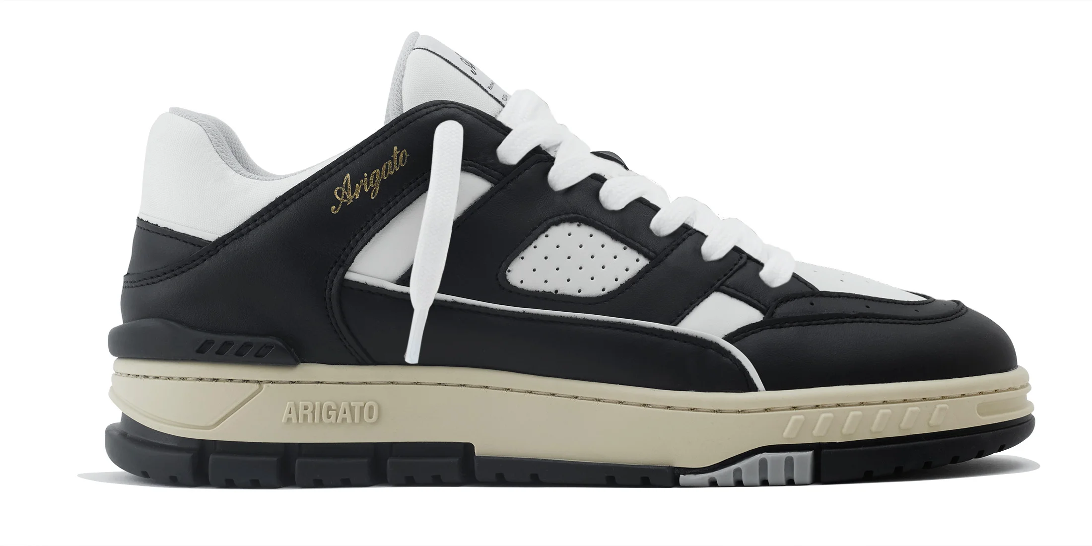 Inspired by vintage basketball styles, the Area Lo sneaker is handmade from LWG-certified leather, suede, and recycled polyester. This model is set on expanded rubber soles that are custom-molded with angular grooves and an ‘Arigato’ logo.