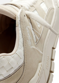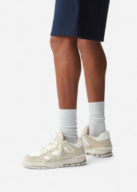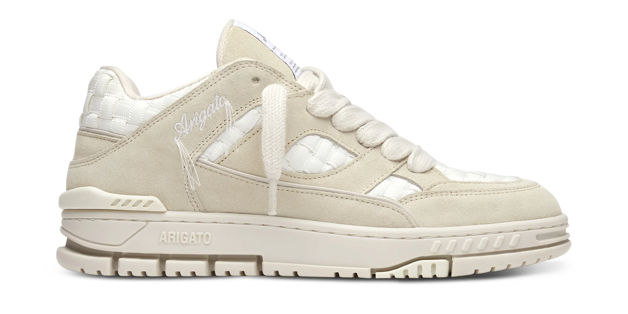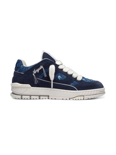 The Area Lo sneaker pays homage to ‘90s basketball styles. This version is crafted from premium suede and paneled with denim that’s cut into strips and woven by hand, making each pair unique. Our embroidered logo details the side and is artfully trimmed with loose threads. Style Details - Upper: 60% Suede + 32% Cotton + 8% Leather - Lining: 82% Recycled Polyester + 9% PU + 9% PA - Sole: 100% TR - European Sizing - Branded woven tongue label - Flat cotton laces - Handmade in Portugal