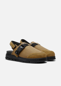 Just like the Area sneaker, the eponymous Area sandal pays homage to ‘90s basketball footwear. Handcrafted from cotton and suede, it’s fitted with a webbing slingback strap and custom buckle for a utilitarian finish. Style Details - Upper: 85% Cotton + 15% Suede - Lining: 100% Recycled Polyester - Sole: 100% TR; height measures 37mm / 1.45" - European Sizing - Adjustable clip fastening - Adjustable velco back strap - Handmade in Portugal
