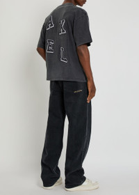 Info & Care Axel Arigato cotton T-shirt Designer applique design at back, ribbed crew-neck, dropped shoulders, faded finish Slips on 100% organic cotton Machine wash; Size & Fit Length shoulder to hem: 27 inches/ 68.5cm Midweight Relaxed, boxy;fit Model is 6'1"/ 185cm, chest size 38.5 inches and wears a size medium