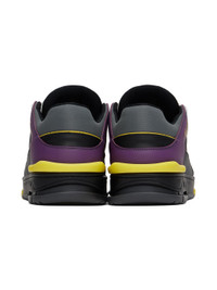 Handcrafted low-top buffed leather, suede, and canvas sneakers in black, purple, and gray. · Perforated detailing throughout · Lace-up closure · Logo patch at padded tongue · Padded collar · Gold-tone logo stamp at outer side · Mesh lining · Logo embossed at textured rubber midsole · Treaded rubber sole Supplier color: Black/Purple Upper: leather, textile. Sole: rubber. Made in Portugal 242307M236002