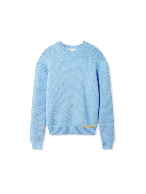 The crew-neck Block sweater is knitted from a soft cotton-blend with a unique pattern. A hand-embroidered logo finishes this relaxed piece. This product is made from a delicate fabric and features hand embroidery, making each piece unique. Please handle it with care. The model is 188 cm / 6'2" ft and wears a size M. Style Details - 60% Cotton 40% Polyamide - Relaxed fit - Patterned knit structure - Hand embroidered logo at bottom hem - Crafted in China - Care instructions:Hand wash cold