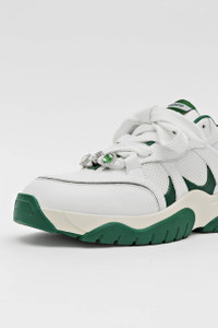 The Catfish sneaker is inspired by skate shoes that were popular in the late ‘90s. This pair has been handmade in Portugal from panels of leather and mesh, and is set on chunky custom thermoplastic rubber soles. The laces are accented with removable crystal embellishments.