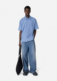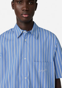 Patterned with custom stripes, the short-sleeve Daily shirt is cut from a stretch cotton-blend. Finishing this piece is our seasonal embroidery. The model is 185 cm / 6”1 ft and wears a size M. Style Details - 67% Cotton 29% Polyester 4% Elastane - Regular Fit - Custom stripe - 'Arigato' seasonal embroidery at the chest - Chest pocket - Front button closure - Crafted in Portugal - Care instructions:40 degrees gentle cycle, wash with similar colours.