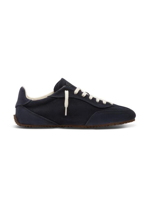 The Daze Runner is a low-top sneaker crafted from suede, designed for a clean, minimal Scandinavian-inspired silhouette, perfect for everyday wear. The sneaker is finished with flat laces, with an additional dye-to-match set in the box, and subtle debossed branding on the tongue. Grounded on a rubber sole, this style is handmade in Portugal. Style Details - Upper: 100% Suede - Lining: 53% Bamboo, 25% Leather, 22% Polyester - Sole: 100% Rubber - Height measures 7mm - European Sizing - Flat laces, with spare dye to match option in box - Debossed branding on tongue - Handmade in Portugal