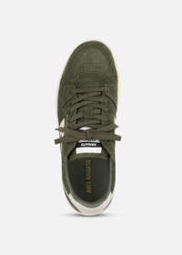 The handcrafted Dice-A sneaker features an abstract ‘A’ sweeping across the sidewall. Combining vintage and modern design details, its suede and leather profile is paneled and perforated.