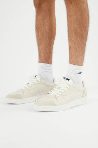 The Dice Lo Sneaker presents a modern staple with a vintage inspired design. The upper combines nubuck and Italian leather, set on a textured branded rubber sole made using partly recycled rubber. The lining is responsibly produced using recycled PET bottles and recycled plastic.