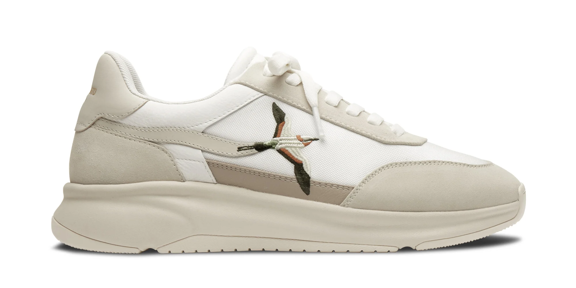 The Genesis Neo Bird Runner is embroidered with our signature winged motif – a symbol of freedom, it debuted in a 2017 collection. This lightweight pair is handcrafted from panels of leather, suede and textile, and stamped with gold branding. Style Details - Upper: 68% Leather, 32% Polyester - Lining: 100% Polyester - Sole: 100% Rubber - Height measure 42mm - European sizing - Bee bird signature embroidery on quarter panel - Logo stamp in meatllic gold - Flat laces - Handcrafted in Vietnam