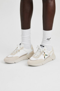 The Genesis B Bird Runner is embroidered with our signature winged motif – a symbol of freedom, it debuted in a 2017 collection. This model has been handcrafted in Portugal from premium leather, suede and SEAQUAL® YARN, and is set on lightweight EVA soles. Style Details - Handcrafted in Portugal - Upper: 60% Recycled Polyester, 20% Leather, 20% Suede - Lining: 100% Recycled Polyester - Sole: 100% Expanded EVA - Rubber sole measures 32 mm/1.26 inch - Removable cushioned footbed for enhanced comfort - Bee bird embroidery linked with back tab through a leather wave - Logo stamp in gold-tone - Recycled polyester branded dust bag included - FSC certified packaging - Do not wash in washing machine