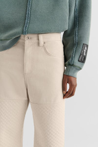 The Grate trousers are cut from cotton in a relaxed profile and feature embossed paneling at the front and back. A branded leather patch details the back of the waistband. These trousers are cut in a straight-leg fit. The model is 187cm / 6'1 ft wears a size 31. Style Details - 100% Cotton - Metal grid embossing knee patch and bottom back leg - Arigato Leather Patch at back waistband - Straight fit - Manufactured in Turkey - Care instructions: 30 degrees