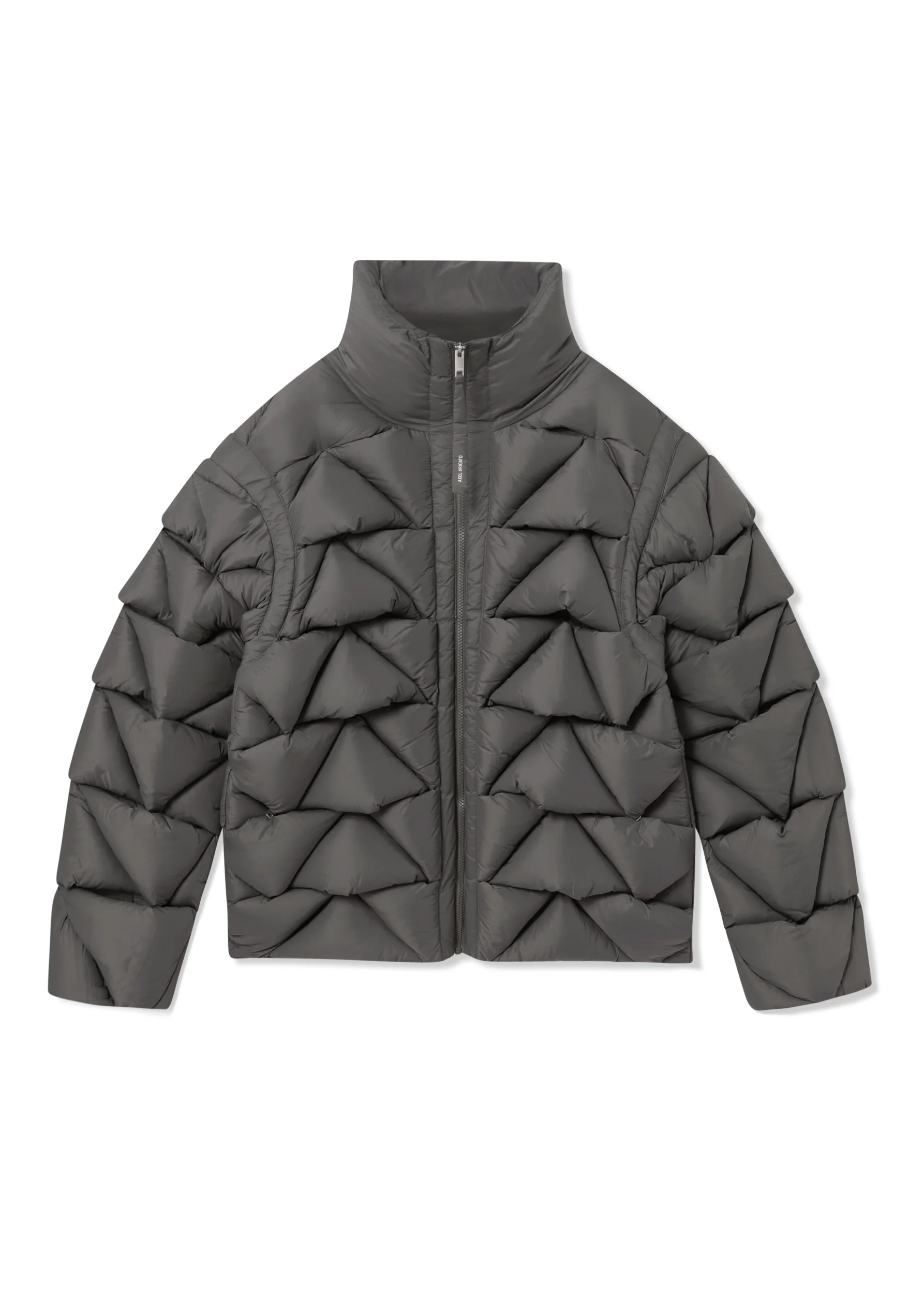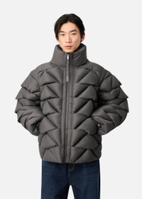 The Knit puffer jacket has a quilted knit-like structure that’s filled with repurposed down. Its relaxed silhouette is finished with a branded zip and adjustable drawcord hem. The model is 189 cm / 6’3 ft and wears a size M. Style Details - Main Fabric: 100% Polyamide - Filling material: 85% Re-used duck down 15% Feather - Relaxed fit - Quilted 'Knit' structure - Zip closure at the front - Branded zip puller - Side pockets with zip closure - Internal chest pocket - Elasticated storm cuff with press snap - Printed shell fabric zip puller - Adjustable hem with elasticated drawstring - Crafted in China - Care instructions: Dry clean only