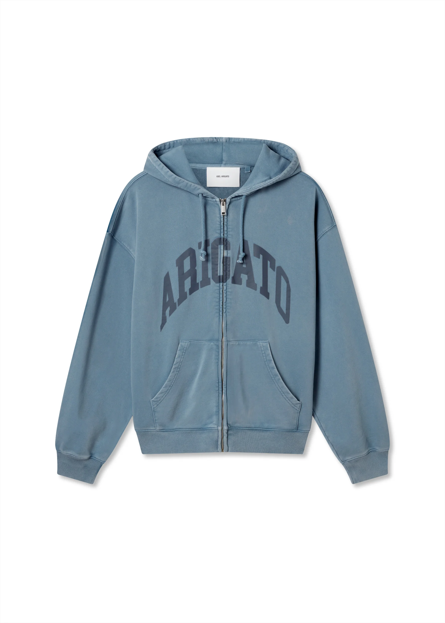 Cut from organic cotton, the oversized Link hoodie is crafted using an old-dye technique to achieve a vintage look. Arched ‘Arigato’ branding is printed in a subtly contrasting shade. This item has undergone a specialized dyeing process to give it a vintage look. As a result, all pieces are unique and include small variations in dimension and color. The color will continue to fade with wear, enhancing the distressed finish. We recommend washing this garment with similar colors. Do not spot clean as this will lead to localized fading. We advise against wearing light garments underneath as color transfer may occur. The model is 185 cm / 6’1 ft and wears a size M. Style Details - 100% Organic Cotton - Oversized fit - Printed branding - Branded zip puller - Kangaroo pocket - Old-dye technique - Crafted in Portugal - Care instructions:30 degrees gentle cycle, wash with similar colours