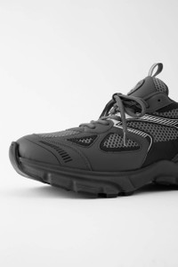 The Marathon Runner sneaker combines design elements of ‘90s athletic shoes with an exaggerated sole. Handmade from LWG-certified leather and recycled polyester, it has paneled uppers with mesh inserts protected by a PU transfer. They’re set on chunky custom thermoplastic rubber soles and feature reflective webbing from heel to toe. Designed for use in the city, this shoe is not intended for sporting activities.