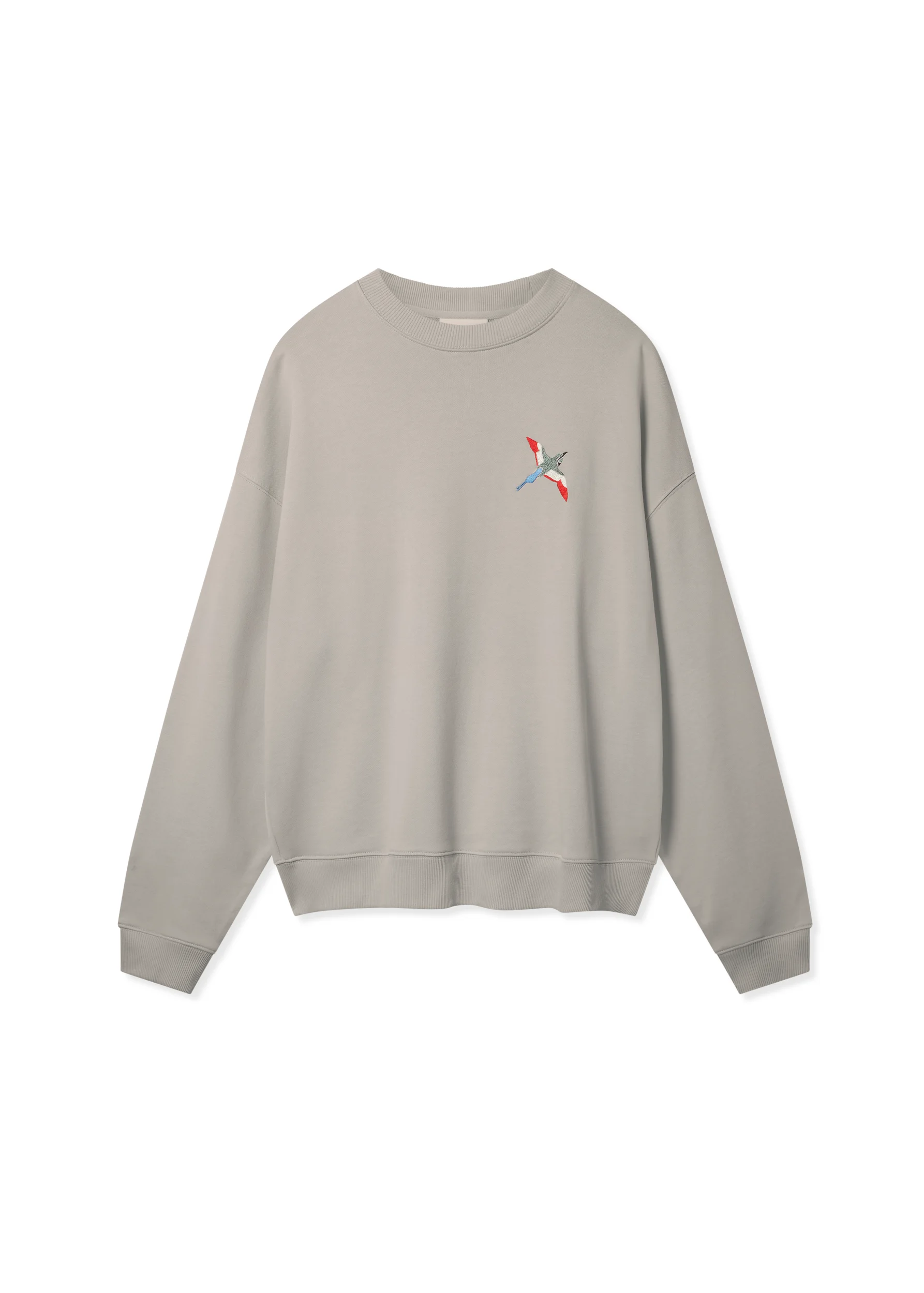 The Micro Bee Bird Sweater is cut from organic cotton fleece with a relaxed silhouette. Featuring a loopback construction for warmth and breathability, it’s detailed with a shiny embroidered bee bird on the chest. Made in Portugal. The model is 188 cm / 6'2 ft and wears a size M. Style Details - 100% Organic Cotton - Relaxed Fit - Loopback fleece fabric - Shiny embroidered bee bird on left chest - Crafted in Portugal - Care instructions: 30 degrees gentle cycle, wash with similar colours