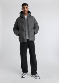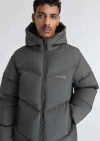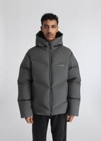 The Peak puffer jacket is crafted from recycled shell and filled with repurposed down. It’s finished with a tonal screen-printed logo and adjustable drawcord at the hood and hem. Style Details - Main fabric: 100% Recycled Polyester - Filling material: 85% Re-Used Duck Down 15% Feather - Diagonal quilted pattern - Branded double ended zip closure - Elasticated hidden cuffs - Adjustable cord at hem - Tonal screen print branding on chest - Adjustable drawstring at hood - Elasticated internal pockets - Regular fit - Crafted in China - Care instructions:30 degrees gentle wash, tumble dry low heat