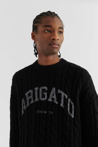 The Prime sweater is cable-knitted from a blend of wool and recycled nylon that’s soft and warming. Designed in a classic crew-neck profile, this piece is screen-printed across the chest with ‘Arigato’ in cracked lettering. This sweater is cut in a regular fit. The model is 187cm / 6'1 ft wears a size M.
