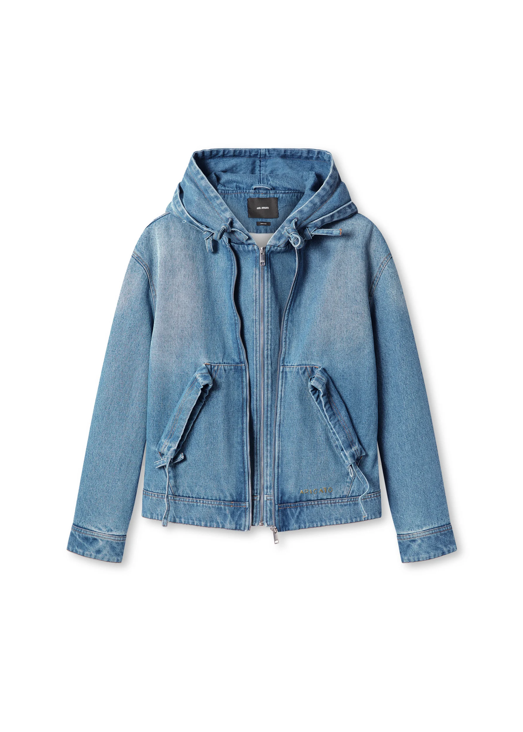 The Reed jacket is cut from cotton-denim with a washed finish. It features a doubled hood and debossed back patch in our signature shade of yellow. This product is made from a delicate fabric with a unique finish. Please handle it with care. The model is 185 cm / 6'1" ft and wears a size M. Style Details - 100% Cotton - Regular Fit - Washed denim fabric - Double metal zip closure at the front - Branded zip puller - Double hood design feature - Side pockets - Drawstring detail at hood & side pockets - Fully lined in cotton fabric - Brand yellow debossed label - Crafted in China - Care instructions: Dry Clean Only