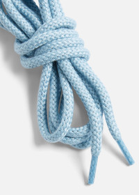 These round laces let you personalise your sneakers with a clean, modern finish. Crafted in Portugal from cotton, their 5mm profile adds structure and a soft, tactile feel. At 125 cm, they’re great for experimenting with new lacing styles or doubling up for a little extra volume. We recommend 125 cm laces for sizes EU 35–41, and 135 cm for sizes EU 42–48. Style Details - Color: Blue - Comes in a pair. - Composition: 100% Cotton - Length measures: 125cm - Width measures: 5mm - Crafted in Portugal