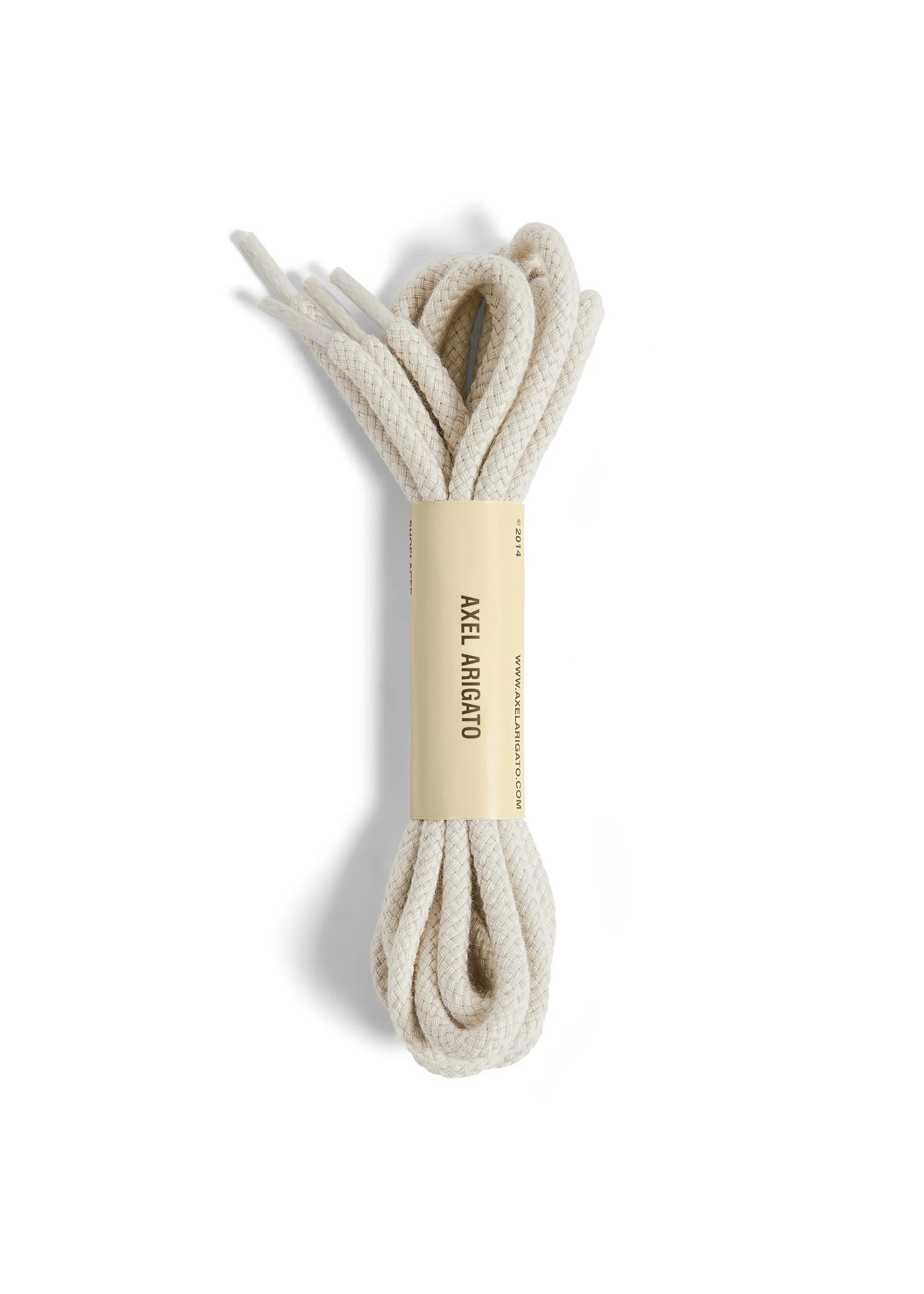 These round laces let you personalise your sneakers with a clean, modern finish. Crafted in Portugal from cotton, their 5mm profile adds structure and a soft, tactile feel. At 135 cm, they’re great for experimenting with new lacing styles or doubling up for a little extra volume. We recommend 125 cm laces for sizes EU 35–41, and 135 cm for sizes EU 42–48. Style Details - Color: Tofu - Comes in a pair. - Composition: 100% Cotton - Length measures: 135cm - Width measures: 5mm - Crafted in Portugal