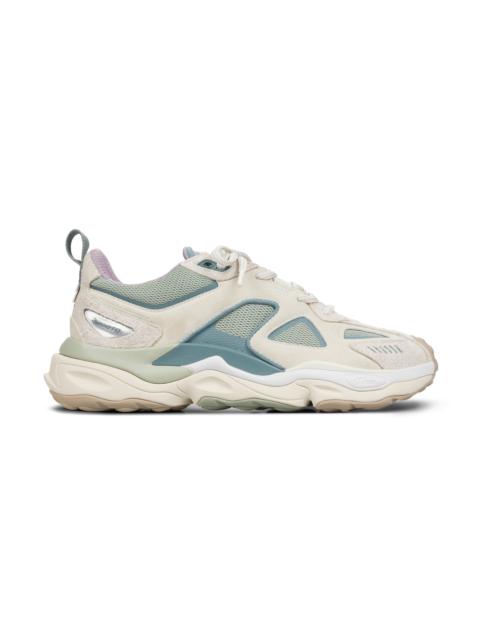 The Satellite Runner is defined by voluminous yet airy proportions. It’s crafted from leather, suede and oval mesh, and features featherweight AXLFoam® midsoles for a light step.