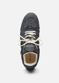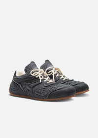 The Slow Runner’s layered, low-profile silhouette embodies the ethos of deconstruction and innovation. A seamless blend of old and new, the upper reimagines the iconic Marathon Runner through familiar, intricate panels of Italian denim with a tactile denim underlay. This model is set on a sleek, flat outsole with a unique knit-inspired finish that echoes design elements from our ready-to-wear collections. Style Details - Upper: 100% Cotton - Lining: 85% Recycled Polyester, 15% Microfibre - Sole: 100% Rubber - Height measures 7mm - Italian Denim - European Sizing - Round laces - Debossed branding on tongue - Handcrafted in Portugal