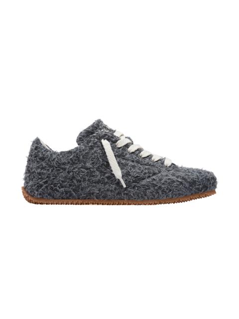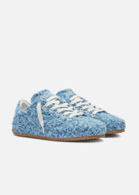 The Tact Runner’s low-profile silhouette is distinctly bold – blending a minimalist design approach with experimental materials. Trimmed with leather, it’s handcrafted in Portugal from Italian denim that’s artfully distressed for a uniquely fluffy texture. Handdrawn chain-stitch embroidery subtly details the tongue, while the rubber sole is uniquely molded to resemble knitwear. To preserve the shape, appearance and quality of the Tact Runner’s minimal silhouette, always unlace your sneakers and use a shoe horn when putting them on and taking them off. Style Details - Upper: 85% Cotton, 15% Leather - Lining: 67% Leather, 33% Recycled Polyester - Sole: 100% Rubber - Height Measures 7mm - European Sizing - Italian Denim - Flat textured - Hand drawn chain stitch embroidered branding - Handcrafted in Portugal