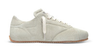 The Tact Runner’s low-profile silhouette is distinctly bold – blending a minimalist design approach with experimental materials. Trimmed with leather, it’s handcrafted in Portugal from Italian suede that’s brushed for a uniquely fluffy texture. Handdrawn chain-stitch embroidery subtly details the tongue, while the rubber sole is uniquely molded to resemble knitwear. This pair comes with a second set of tonal laces. Style Details - Upper: 100% Suede - Lining: 67% Leather, 33% Recycled Polyester - Sole: 100% Rubber - Height Measures 7mm - European Sizing - Flat textured - Hand drawn chain stitch embroidered branding - Handcrafted in Portugal